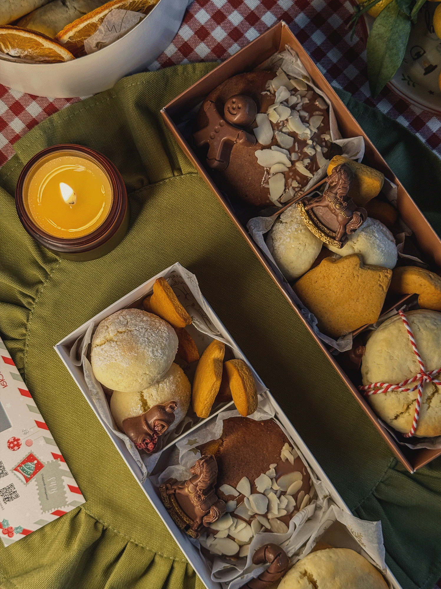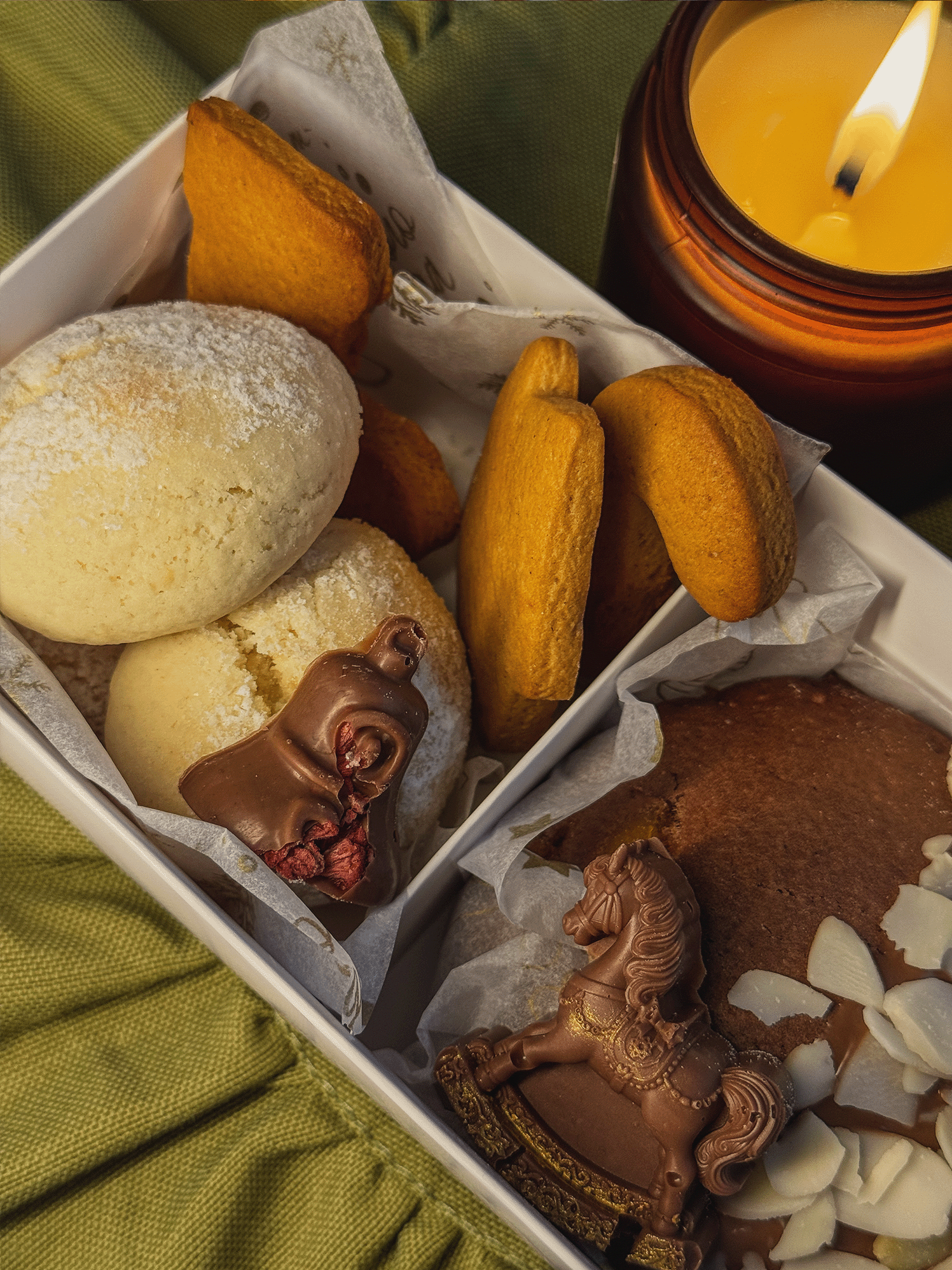 Имбирное, лимонное и кокосовое печенье, шоколадный декор, орешки со сгущенкой, шоколадный пряник и Щелкунчик из бельгийского молочного шоколада